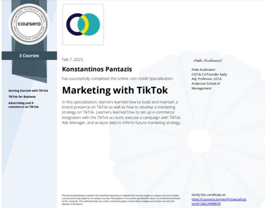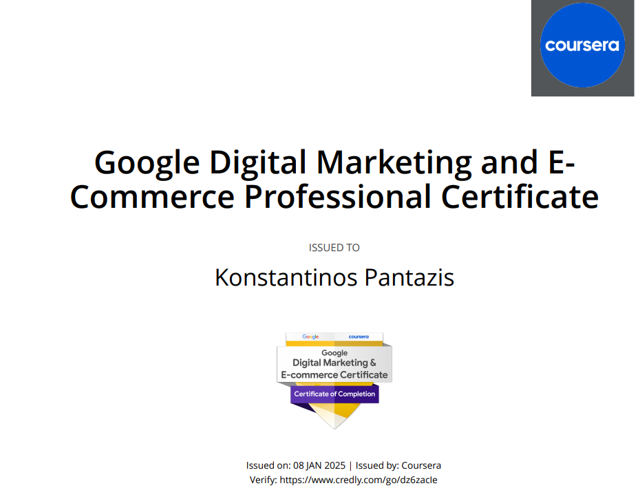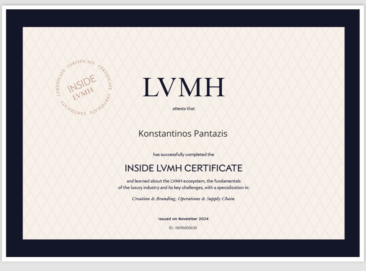 Specializing in Digital Marketing, with certifications from top organizations such as Google (Google Digital Marketing & E-commerce Specialization), META (Meta Certified Digital Marketing Associate), LVMH (INSIDE LVMH CERTIFICATE), and universities like the University of Illinois Urbana-Champaign (Digital Marketing Specialization) and the University of Pennsylvania (Business Foundations Specialization Certificate), Konstantinos Pantazis and the Kosadel team execute high-level marketing strategies. Over his career, he has successfully managed advertising budgets exceeding £/€ 50 million across channels such as Television, Outdoor Advertising, and Online Marketing (Display, Social Media, SEM, SEO, etc.).